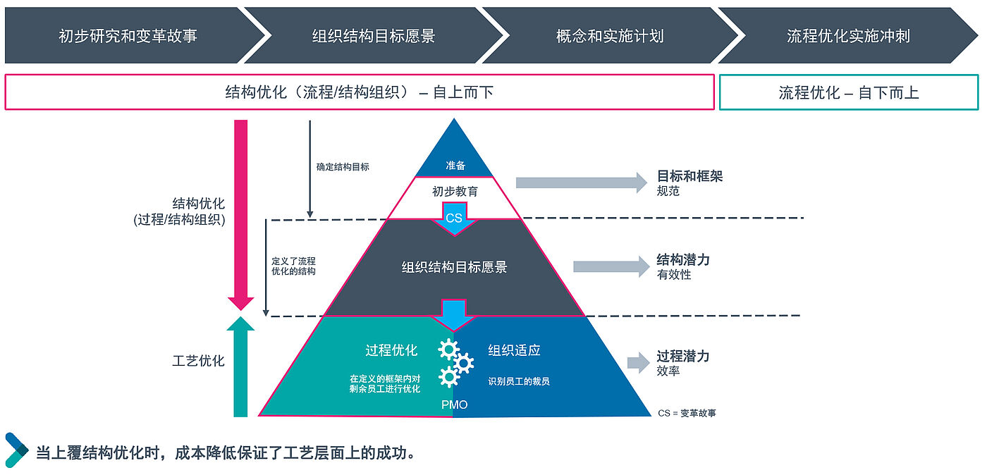 目标组织的过程和结构是在设定的目标值的基础上开发的。由此所需的精简措施必须透明,构成该领域的设定目标。